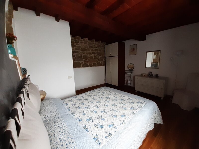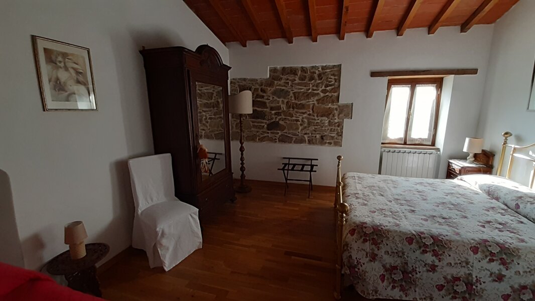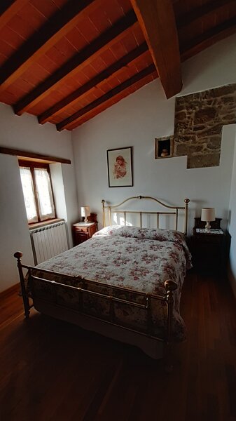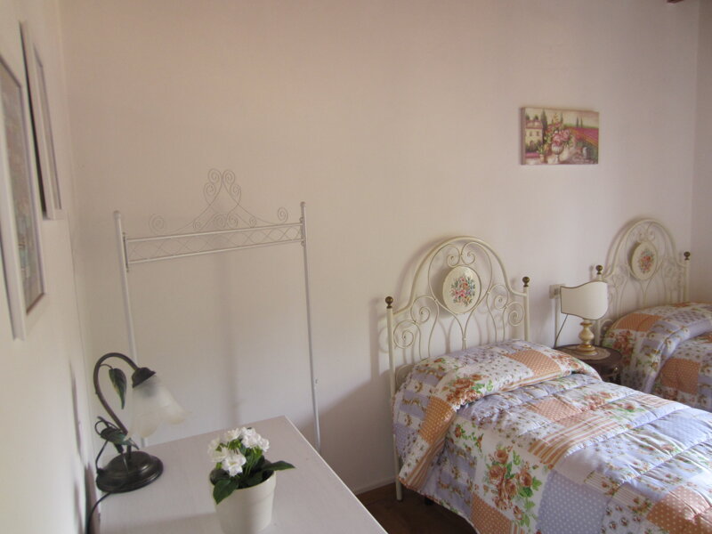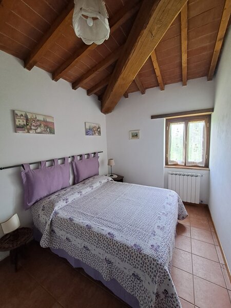 La zona notte è composta da due comode camere, una con un letto matrimoniale ed un letto singolo con vista sulla vallata e sulla piscina e una seconda camera con letto matrimoniale che si affaccia sui giardini.