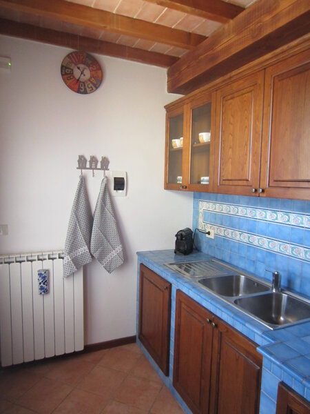 La cucina è molto funzionale e dotata di tutti gli elettrodomestici necessari: fornelli, forno elettrico frigo/congelatore, lavastoviglie, lavatrice, forno a micro onde, bollitore, tostapane e macchinetta del caffè a cialde Nespresso, nonchè la classica Moka.